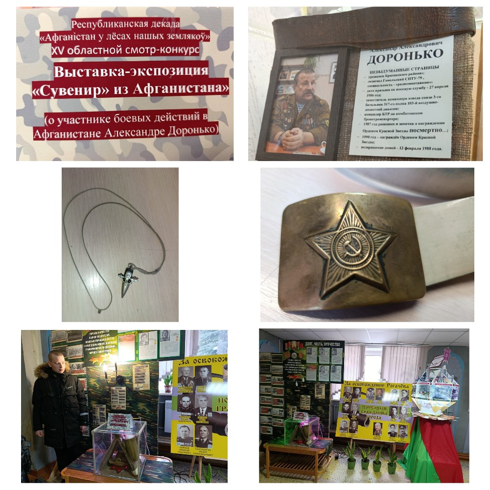 Идея выставки-экспозиции зародилась после встречи с воином интернационалистом Александром Александровичем Доронько. В дружеской обстановке за чашкой чая участник боевых действий Александр Доронько поделился с нашими учащимися своими воспоминаниями. Долгим и непростым был боевой путь Александра Александровича, как и многих воинов-интернационалистов. Больше часа рассказывал гость о тяжелых боях, ранении, наградах, боевом братстве и крепкой солдатской дружбе, показывал фотографии. Память о встрече учащиеся колледжа сохранять не только в своих сердцах, но и на видео.
